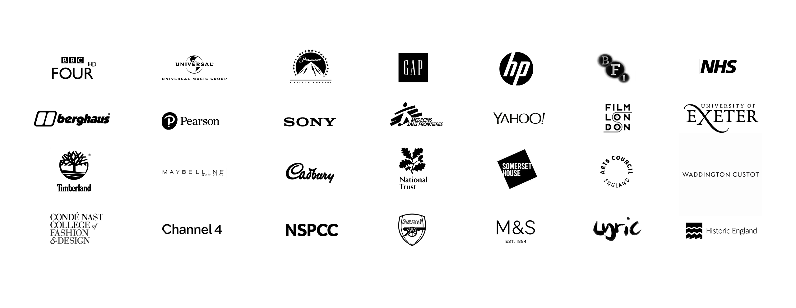Work for clients includes NHS, Timberland and Berghaus, Somerset House, Yahoo and Paramount Pictures. Sony Music, Universal and NSPCC.